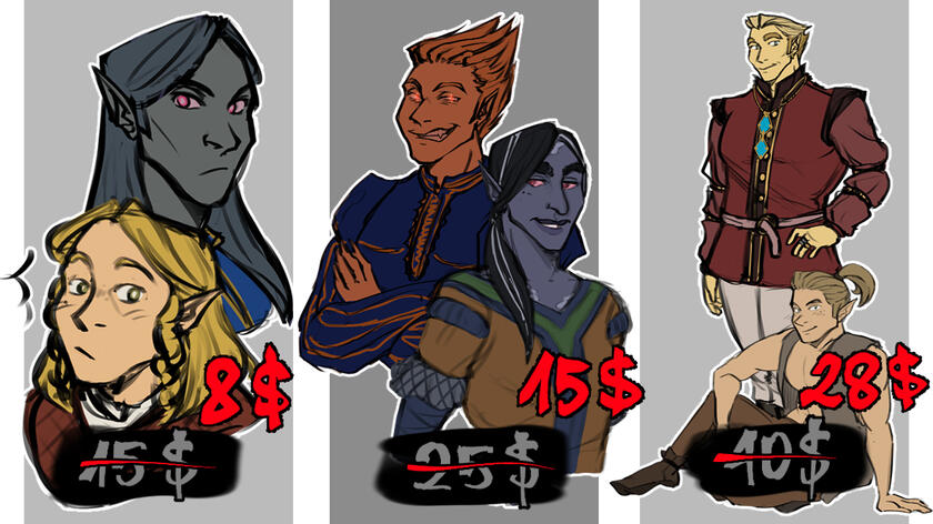 ➡️ 55 USD couple❗ +10 USD if you only have a written description of your character